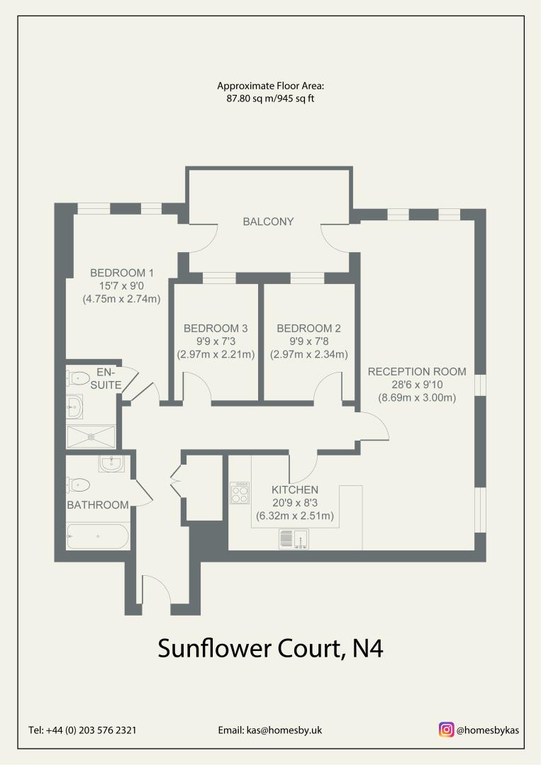 Finally to the open access to the lounge/ diner kitchen with the lounge providing access to the balcony. This area offers double windows with views over Finsbury Park, a dining space to host guests and a breakfast bar backing onto the kitchen. The kitchen has an integrated washer/ dryer, integrated dishwasher, integrated fridge freezer and electric oven/ hob.